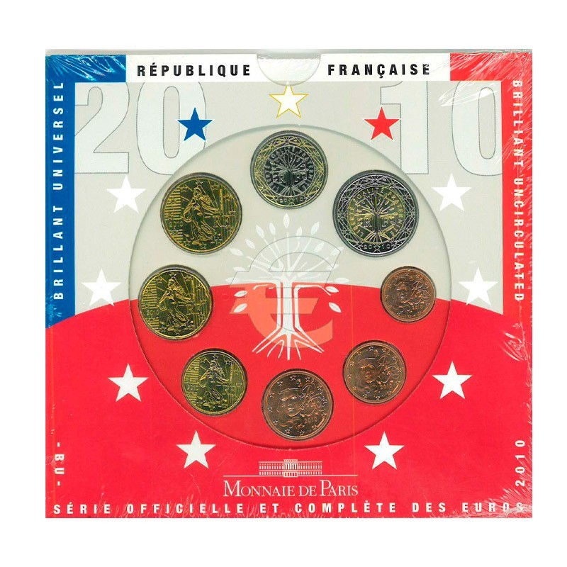La Monnaie de Paris presenta la nueva Cartera de Euro correspondiente al año 2010, compuesta por 8 monedas (2 y 1 Euro, 50, 20, 10, 5, 2, 1 Céntimos) como viene siendo habitual. El Anverso de las monedas de 1, 2 y céntimos muestran a una Marianne joven y femenina; las monedas de 10, 20 y 50 céntimos muestran a la sembradora; las monedas de 1 y 2 Euro muestran un árbol como símbolo de la vida. El Reverso de las monedas es común a todos los países. Rodea las monedas las doce estrellas.