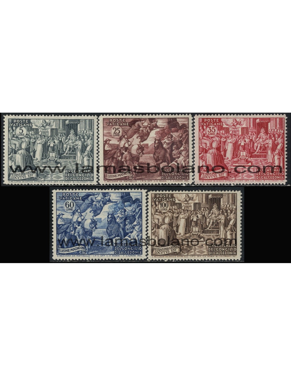 SELLOS DE VATICANO 1951 - CONCILIO DE CALCEDONIA - 5 VALORES CORREO