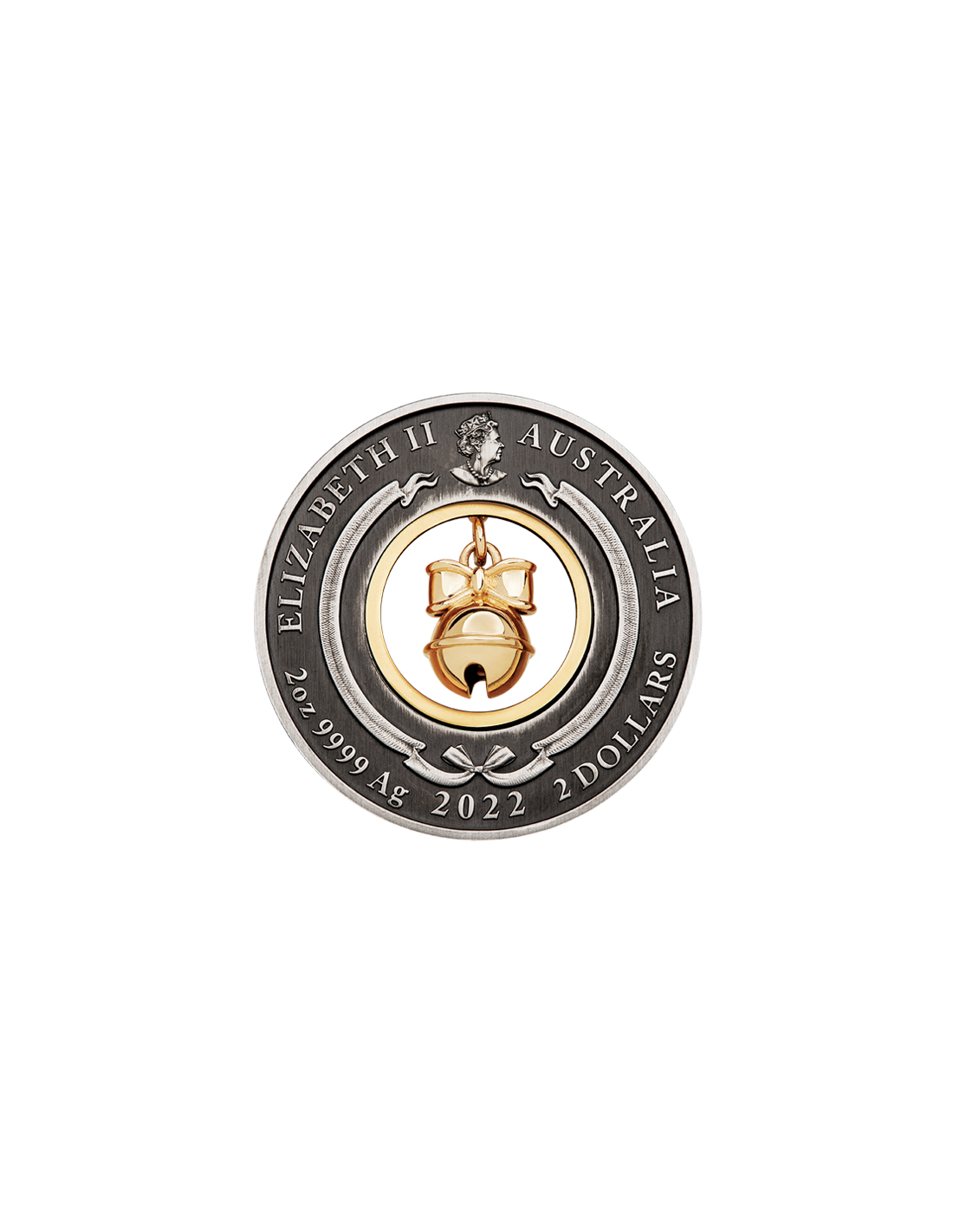 Esta impresionante moneda muestra un cascabel chapado en oro de 24 quilates acuñada por las Perth Mint de Australia. Tradicionalmente se colocaban pequeños cascabeles en los caballos como adorno y también se utilizaban como advertencia de cara a los peatones, especialmente en invierno, cuando los trineos tirados por los caballos eran difíciles de escuchar y/o detener.