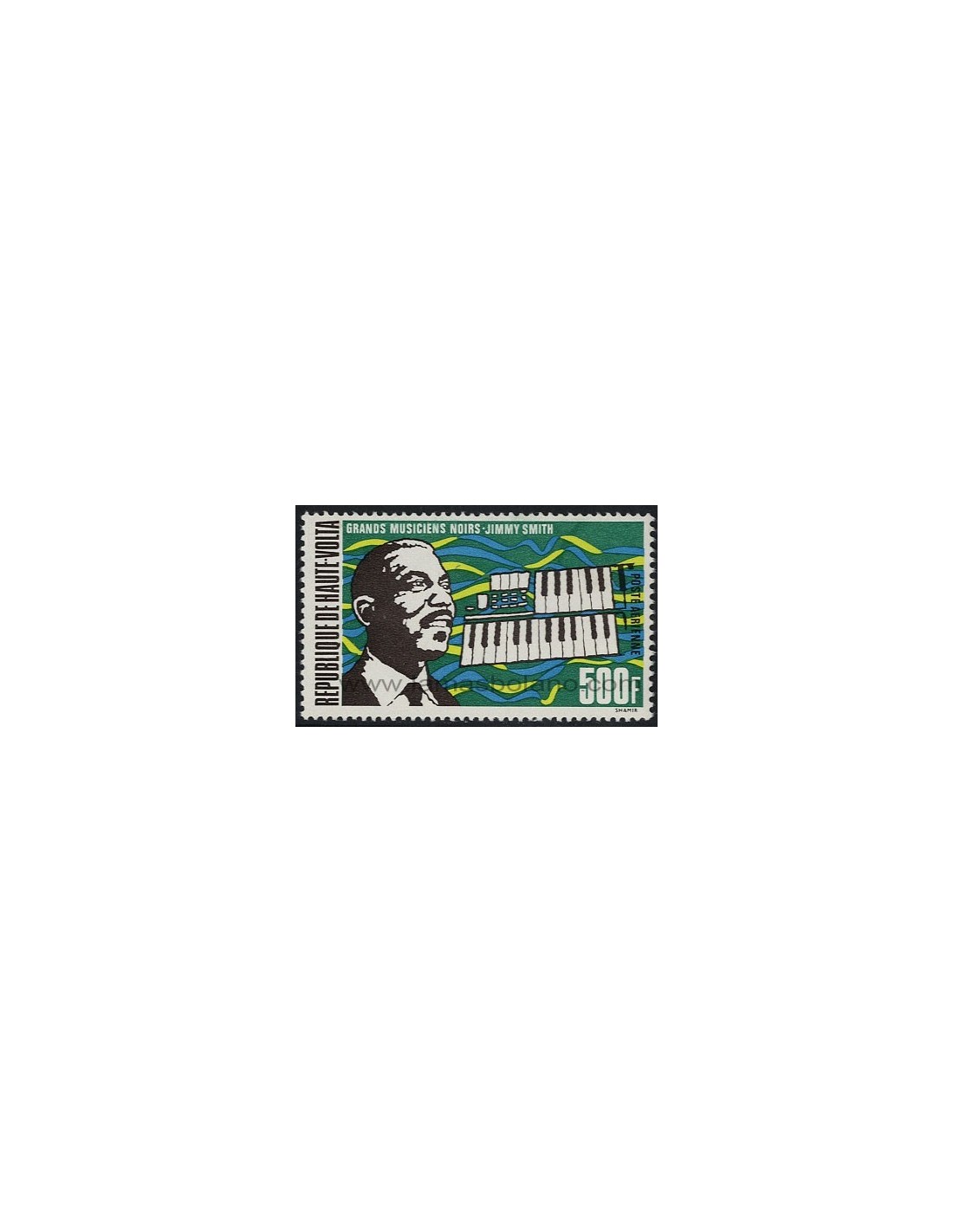 SELLOS DE ALTO VOLTA 1972 - JIMMY SMITH GRANDES MUSICOS NEGROS - 1 VALOR AEREO