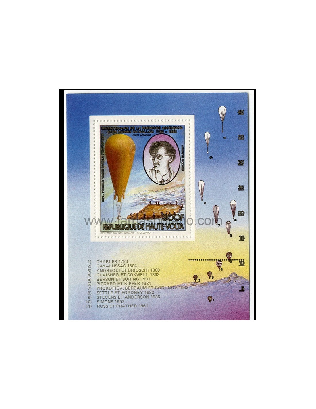 SELLOS DE ALTO VOLTA 1983 - GLOBO BICENTENARIO DE LAS PRIMERAS ASCENSIONES A LA ATMOSFERA - HOJITA BLOQUE