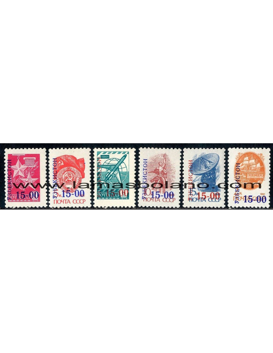SELLOS UZBEKISTAN 1993 - SERIE CORRIENTE - 3 VALORES CON SOBRECARGA NUEVO VALOR EN CIRILICO - CORREO